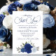 This beautiful wedding invitation features a cluster of hand painted roses in shades of dusty blue, navy, and indigo, along with eucalyptus leaves and garden greenery. The heading is written in fancy script lettering and reads: Nothing Fancy, Just love. This invite is the perfect combination of modern and timeless - it's both classy and whimsical making it perfect for either a formal or casual ceremony.