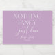 This is a Lilac Nothing Fancy Just Love Minimalist Casual Wedding Mini Sparking Wine Bottle Labels!