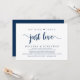 Announce and share your happily ever after in style with our modern Classy Navy Blue theme design (Nothing Fancy Just Love) wedding elopement celebration invitation card. It is ideal for couples who have decided to celebrate their best day. With its sophisticated yet playful design, this invitation is sure to set the tone for an unforgettable event. The invitation card features a modern and minimalist script design theme, adding a touch of timeless elegance to your celebration. Designed by TeeshaDerrick