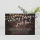 Announce your happily ever after in style (Nothing Fancy, Just Love) with our modern rustic dark wood, cottage string lights design wedding elopement celebration invitation card. Our Happily Ever After Party Celebration Invitation card is ideal for couples who have decided to elope and want to host a party to celebrate their union. With its sophisticated yet playful design, this invitation is sure to set the tone for an unforgettable event. The invitation card features a minimalist rustic elegant design scheme, adding a touch of timeless elegance to your celebration. Designed by TeeshaDerrick