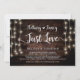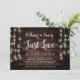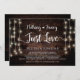 Beautiful Nothing Fancy, Just Love, Wedding Elopement Announcement / Invitation card, in Rustic farm Wood, String Lights design. This is perfect for your wedding reception and post-wedding celebration party. Add your details in matching font / lettering.