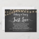 Beautiful Nothing Fancy, Just Love, Wedding Elopement Announcement / Invitation card, in Rustic farm chalkboard, String Lights design. This is perfect for your wedding reception and post-wedding celebration party. Add your details in matching font / lettering.