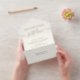 Elegant light cream elopement or private wedding announcement and casual reception all-in-one invitation featuring "Nothing Fancy Just Love" showcased in a blend of simple lettering and a chic script with swashes, your marriage announcement and reception invitation, and your RSVP response card, all rendered in your choice of real gold, silver or rose gold foil.