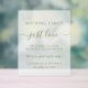 Chic frosted acrylic wedding welcome sign featuring "Nothing Fancy Just Love" showcased in a blend of simple gold lettering and an elegant gold script with swashes, and "We're so glad you're here," your first names and your wedding date in classic gold serif typography.