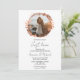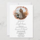A simple chic wreath rose gold foil calligraphy photo wedding invitation. Easy to personalise with your details. Geometric wreath photo wedding invitation, modern boho wedding invitation editable, customisable, calligraphy handwritten font, simple, elegant.