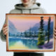 Beautiful artistic poster print features watercolor digital painting of a peaceful mountain lake with overlay of a profound and inspirational Zen quote: “When you realize nothing is lacking, the whole world belongs to you.” ~ Lao Tzu