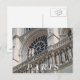 This is the facade of Notre Dame de Paris, a gothic cathedral in Paris, France. The beautiful gothic architecture of this mediaeval church and the exterior of the stained glass windows are on display in this photo. Notre Dame is also known as Our Lady of Paris. This close-up showcases the detail of the rose window and the statues adorning the exterior of the stone cathedral. Notre Dame is a famous and popular Parisian tourist attraction located on an island in the Seine River called Ile de la Cite. It is one of the most famous European churches.