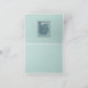 This monogram note card features a vintage Art Nouveau abstract Peacock feather design (c. 1895), in shades of blue, aquamarine, and turquoise. On the front, a template for the bride's new monogram. Inside the full Peacock and plenty of space for your writing.