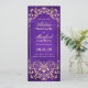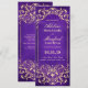 These elegantly thin save the date wedding announcements, in stunning tones of resplendent pale gold and sumptuous aubergine purple, are a tasteful blend of Art Nouveau and Victorian sensibilities, with a sophisticated frame of lovely swirls and delicate scrollwork, and text classic serif and block fonts. The wedding rsvp wording is completely customisable. Personalise the back with your reply by date.
