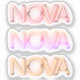 Nova name in neon lights. Three copies - one in a pink hue, one in a blend of yellow, pink and purple and one in golden yellow.