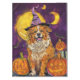 Embrace the Halloween spirit with this enchanting design featuring a cute dog in a witch hat surrounded by carved pumpkins. Perfect for adding a touch of spooky charm to your festive celebrations.