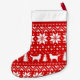 Toller Lover’s Christmas Stocking. Christmas sweater style pattern with white Nova Scotia Duck Tolling Retriever silhouettes. Personalise this cute holiday stocking with your name or your dog’s name. A perfect addition to hang on your fireplace mantle. Everyone wants to be included in the seasonal festivities and our canine friends are no exception. Treat your four legged family member with a custom Xmas stocking. This cool Toller Christmas stocking is great for both dogs and dog lovers. Visit Jenn’s Doodle World for even more dog breed stockings and pet lover’s holiday decorations.