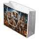 Unleash the spooky spirit with this eerie Halloween design featuring a pack of dogs under a dark, moonlit sky, surrounded by flying bats and glowing pumpkins. Perfect for those who love a touch of frightful fun with their furry friends!