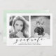 Our stylish "Now and Then" graduation photo announcements display your graduate's favourite senior photo (now) as well as a baby or toddler photo (then). Change the years below each photo to reflect the graduation year and birth year (or year photo was taken). The modern graduation announcements display "graduate" in an elegant script font with the graduate's name, school name, and class year below. The reverse side of the grad announcement features a soft mint green watercolor background. Add a photo or text to the back for a more personalised design!