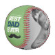 Lovely customisable baseball featuring two pictures of your child with the wording "Now and then" between them: you can easily add one old/newborn picture in black and white on one side, and an actual colour photo on the other side. This baseball is completed by a "Best dad ever" typography script in white and blue font, with a black moustache on a green background.