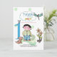 A cute, hand-drawn, boy's, first-birthday celebration invitation featuring "a little man" with the number 1, a puppy, dragonfly, flower and bird. (Pix). <br/><br/>The card is easy to customise with your wording, font, font colour, paper shape options and choice of six paper types.<br/><br/>Not exactly what you're looking for? All our products can be custom designed to meet your needs at no extra charge.<br/><br/>Simply contact us at askcottonlamb@gmail.com.<br/><br/>Coordinating products available: Just ask us!