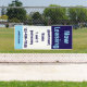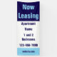 This is a blue and white business banner is a text template. You can edit it to show a custom message. (Shown: Now Leasing Apartment Name) There are placeholder digits for a phone number. Also, there are lines of display text for the number of bedrooms and your website. All text can be edited or deleted.