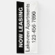The top line of the display text is white and says NOW LEASING. The second line of the text is black and is for a custom message such as the apartment community name. The bottom line has black display digits for a phone number. All text can be edited or deleted.