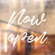 Now open modern business opening window cling