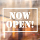 This "Now Open" Window Cling Graphic is bold enough to announce your business is trading. New company or new business notice. White on clear background.
