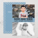 Cute and lovely father's day greeting card personalizable by adding two photographs of your son, an old black and white one on the lower part (the black and white effect is automatically applied), and an actual colour picture on the upper part. Between the photographs, there is an elegant light blue band with the wording "Now and then" and "happy father's day" with your son's name.