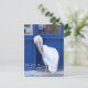 A pelican in Mykonos, Greece entering a store. This pelican has learned to block the door to the shops until he is bribed with food.