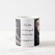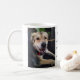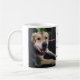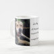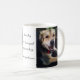 Aclassic white coffee mug with 2 pictures of Lucky, a nowzad rescue dog on both sides of the mug.
