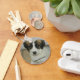 A button- style keyring featuring Spike, a Nowzad rescue dog.