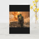 This provocative greeting card offers a darkly humorous take on love with a bold, eye-catching design that juxtaposes romance and catastrophe. The cover features a stark, graphic illustration of two people locked in a passionate kiss, framed against the backdrop of a massive, stylized nuclear blast.