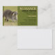 Photo of a racoon looking kind of angry. A great business card for any nuisance animal trapper or related business.