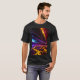 I give wanted to give this a 4 instead of a 5 because these Basic DARK T0shirts run unexpectedly SLIM or Narrow. Which is great if you do not have a potbelly, but I have a paunch. It isn't the shirt's fault that I've got a beer belly. The design and shirt itself is a quality cotton shirt. The color is more of a deep purple, but still a very pretty color. The Basic DARK T-shirts run a bit SLIMMER than the Basic Ts. The neck is a fraction narrower (or seems to be narrower) also. I'm a paunchy middle-aged woman and my neck is 12 inches (31cm) thick and the neckline fell about the same as in the photo of the man, and I had the desire to tug it a bit. So if you're a thick necked man or like loose shirts, be aware these are slimmer shirts. Once I get rid of my lockdown paunch it'll look great. The shirt washed well in cold water with no apparent bleeding. We don't have a dryer, so it hung dry. Did not shrink. Love the colors and the design. The design looks smaller on my shirt than it does on the model on-line. But still, it looks good on the shirt. The printing looks as it does on the model, just the size seems fractionally smaller. Washed garment in cold water, hung dry and design appeared unaffected.