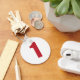 Number 1 in red on white button keychain
