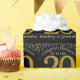 Number 20 in simulated gold glitter style with falling diamonds set on solid black. Congratulations and 20 Years in off-white and golden yellow font. Personalise with names or your own custom message.