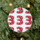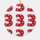 Number 3 - White Stars on Dark Red Ceramic Tree Decoration