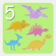 Number 5 Five Dinosaurs Counting Stickers. Counting is fun with this cute cartoon dinosaur count numbers five cartoon dinosaurs Diploducus, Parasaurolophus, Stegosaurus, Pteranodon and Triceratops stickers. This great dinosaur sticker is fully customisable, add your texts and images! A great counting 1 to 10 kid's magnet for the big little dinosaur fans!