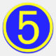 number 5 in a circle, blue background
