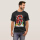 I give wanted to give this a 4 instead of a 5 because these Basic DARK T0shirts run unexpectedly SLIM or Narrow. Which is great if you do not have a potbelly, but I have a paunch. It isn't the shirt's fault that I've got a beer belly. The design and shirt itself is a quality cotton shirt. The color is more of a deep purple, but still a very pretty color. The Basic DARK T-shirts run a bit SLIMMER than the Basic Ts. The neck is a fraction narrower (or seems to be narrower) also. I'm a paunchy middle-aged woman and my neck is 12 inches (31cm) thick and the neckline fell about the same as in the photo of the man, and I had the desire to tug it a bit. So if you're a thick necked man or like loose shirts, be aware these are slimmer shirts. Once I get rid of my lockdown paunch it'll look great. The shirt washed well in cold water with no apparent bleeding. We don't have a dryer, so it hung dry. Did not shrink. Love the colors and the design. The design looks smaller on my shirt than it does on the model on-line. But still, it looks good on the shirt. The printing looks as it does on the model, just the size seems fractionally smaller. Washed garment in cold water, hung dry and design appeared unaffected.