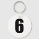 big and bold number 6 in black on the centre of white background button keychain With this numbered keychain, you can have your lucky number or your favourite number everywwhere you go.   Enjoy and have fun to mix and match with the other items from our numbered series at our store GrafiGoodies.		 These numbered items can help you to classify your stuff easily.		 It is also a good choice for a small present.