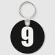 big and bold number 9 in white on the centre of black background button keychain With this numbered keychain, you can have your lucky number or your favourite number everywwhere you go. Enjoy and have fun to mix and match with the other items from our numbered series at our store GrafiGoodies. These numbered items can help you to classify your stuff easily. It is also a good choice for a small present.