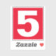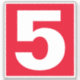 Number Five. Number 5 Individual number as a sticker. Red and white.