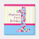 A fun polka dot number one decorates this colourful first birthday magnet. All you have to do is customise with the birthday girl or boy name and you're all set! Makes a great party favour for your guests to take home. Coordinating products are available including stickers, thank you cards, buttons and magnets.