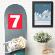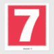 Number Seven. Number 7 Individual number as a sticker. Red and white. 8x8 inches