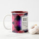 A stylish Numbers 6:24-26 THE LORD BLESS YOU Christian coffee mug with inspirational quote based on the spiritual blessing in Numbers 6:24-26, which commences with THE LORD BLESS YOU AND KEEP YOU. The design shows a burgundy/pink/purple bokeh pattern in the background. The Scripture verse is CUSTOMIZABLE so you can change the Bible translation if you prefer. You can also choose to PERSONALIZE this item by adding your name (which will appear vertically by the handle). Please see Personalize This Template options. This would make a great gift for someone to remind and encourage them of God's favor, protection and blessing on their lives.