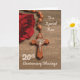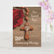 A wooden rosary crucifix is seen next to a beautiful red rose. Beautiful card to celebrate with a nun on her 20th Anniversary of Religious Life.