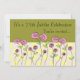 Catholic Nun 75th Jubilee invitations, daisies. "It's a 75th Jubilee Celebration, You're Invited". Yellow and cream polka dots on soft yellow and olive green background with artist drawn pink roses. Customisation on back per the buyer.
