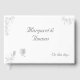 Design front features customisable heading in centre in an elegant, silver-coloured Nuptial font. Customisable text at bottom right corner is displayed in same elegant font.