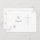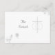 Design front features customisable heading displayed beside the image of a cross with joined wedding rings in centre. Top right and bottom left corners feature the image of roseleaves. Bottom left corner also depicts the image of two doves, one in flight towards the other.
