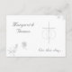 Design front features customisable heading displayed beside the image of a cross with joined wedding rings in centre. Top right and bottom left corners feature the image of roseleaves. Bottom left corner also depicts the image of two doves, one in flight towards the other.