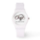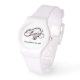 This customised white watch has a white rubberised band and a second hand. It can be further customised with name and/or facility.