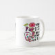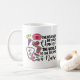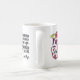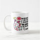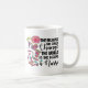 Nurse design mug features tie dyed effect objects including a nurse cap, caduceus, stethoscope, hypodermic needle, bandage, cup of coffee, and black text that reads She Believed She Could Change the World So She Became a Nurse!